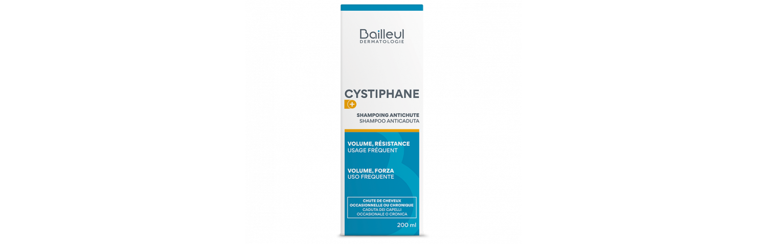 De shampoo tegen haaruitval CYSTIPHANE + is aangepast voor haaruitval, zowel tijdelijk (minder dan 6 maanden) als chronisch.