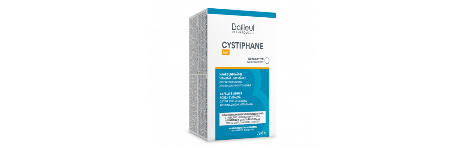 Cystiphane fort ist ein Nahrungsergänzungsmittel auf der Basis von Cystin pflanzlichen Ursprungs, Vitamin B6, Arginin und Zink.