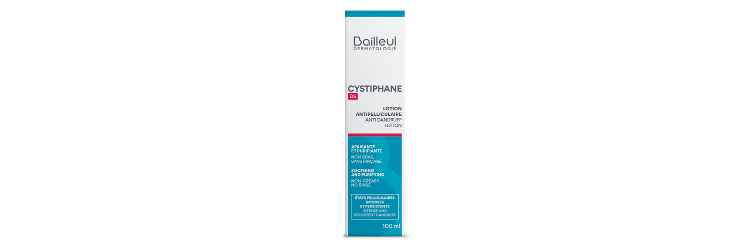 La Lotion anti-pelliculaire CYSTIPHANE élimine durablement les pellicules et limite les récidives.