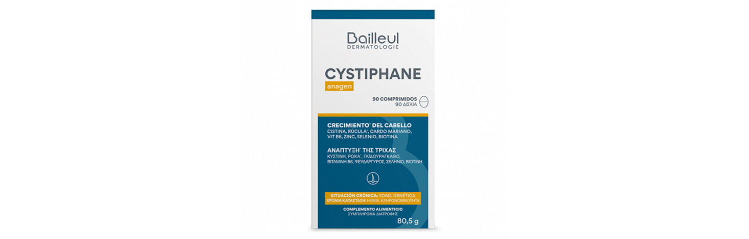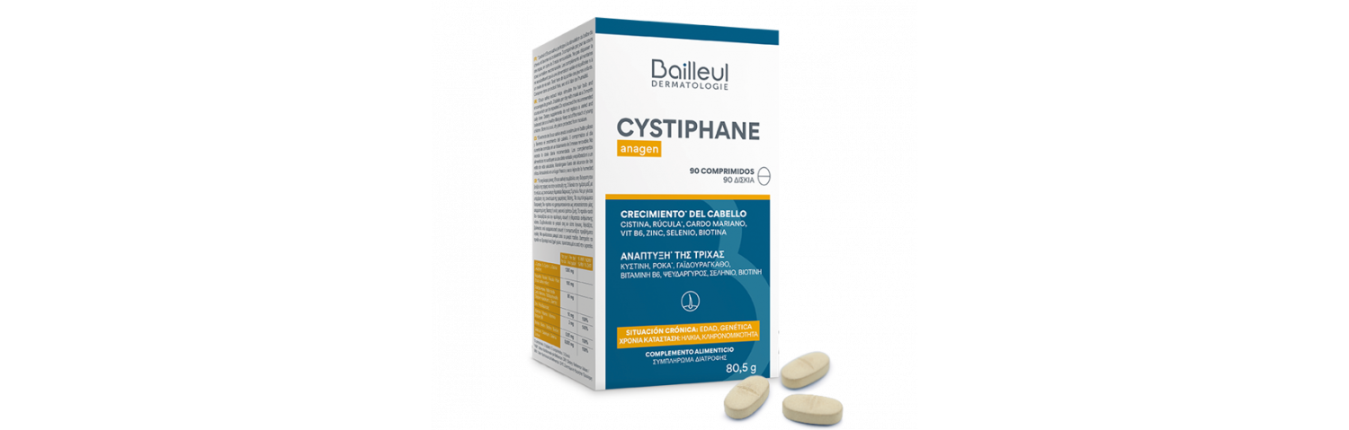 Το CYSTIPHANE anagen είναι ένα συμπλήρωμα διατροφής με ολοκληρωμένη σύνθεση για τα μαλλιά σας και κατάλληλο για χρόνιες καταστάσεις που σχετίζονται με την κληρονομικότητα ή την ηλικία.