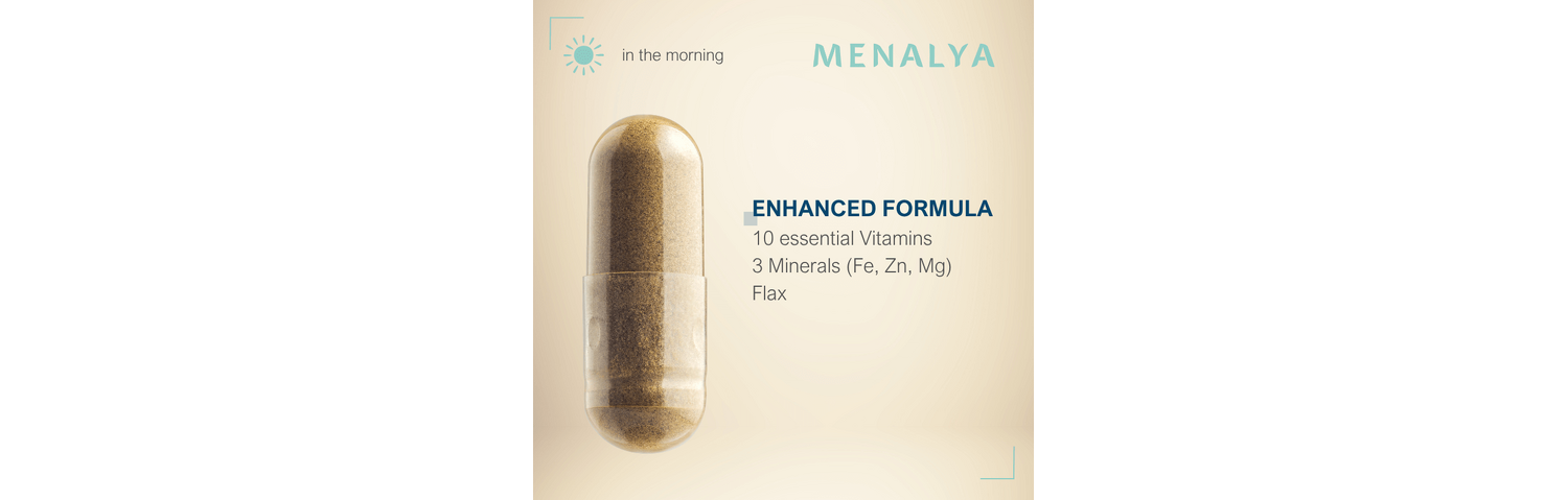 Corn starch; magnesium oxide; capsule shell: hydroxypropyl methylcellulose; dry extract of flax seed (Linum usitatissimum); ascorbic acid (vitamin C); rice protein hydrolysate; anticaking agent: magnesium salts of fatty acids; nicotinamide (niacin); D-alpha-tocopheryl acid succinate (vitamin E); iron sulfate; zinc sulfate; D-pantothenate calcium (pantothenic acid); cholecalciferol (vitamin D); cyanocobalamin (vitamin B12); thiamine mononitrate (vitamin B1); pyridoxine hydrochloride (vitamin B6); riboflavin (vitamin B2); pteroylmonoglutamic acid (folate).