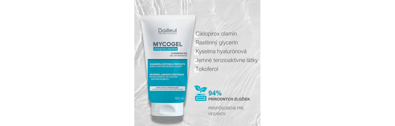 Mycogel je špecifický hygienický prípravok, ktorý je dvakrát testovaný na citlivú pokožku a vonkajšie genitálne sliznice náchylné na mykózy.