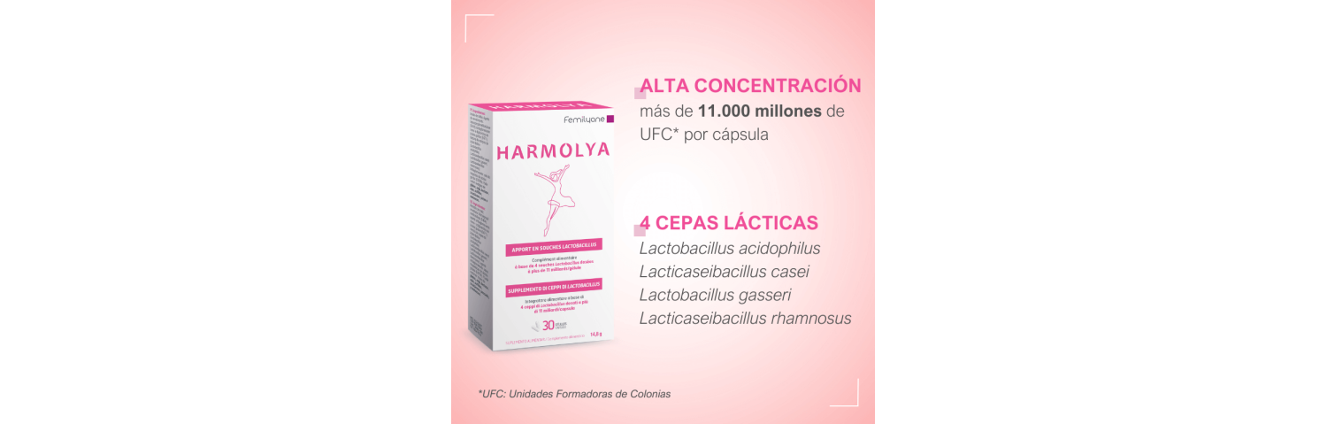 Harmolya es una fórmula única que aporta equilibrio y protección a la flora vaginal.